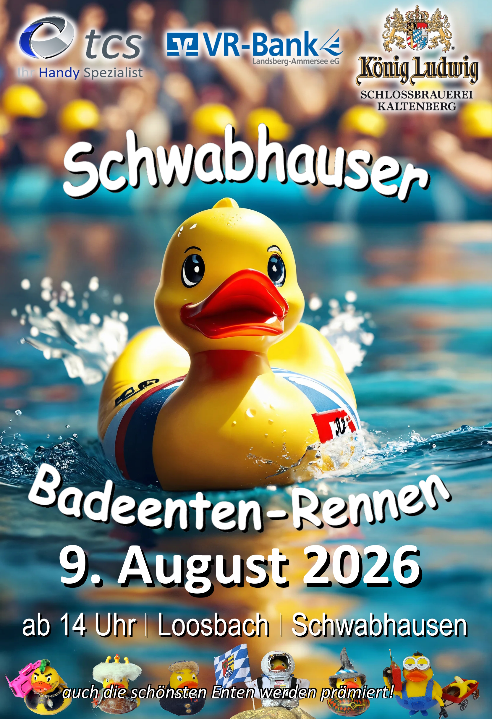 Am Sonntag übernehmen über 1.000 Badeenten das Kommando! Beim legendären Badeentenrennen auf dem Loosbach in Schwabhausen kämpfen Gummiente gegen Gummiente um Ruhm, Ehre und tolle Preise. Schnell, schräg, kreativ – beim Entenrennen ist alles möglich.
